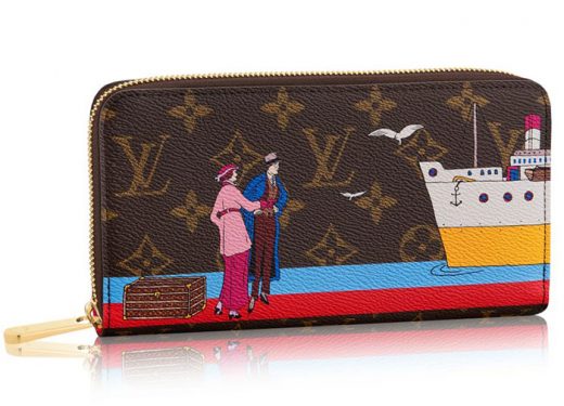 Louis Vuitton’s history has deep ties in the world of travel, from iconic steamer trunks to modern duffel bags and rolling luggage. The animation for 2016 is influenced by the glamorous golden age of transatlantic cruises, along with the brand’s strong travel heritage. The illustrations feature a couple waiting to board a cruise ship with their Louis Vuitton trunk in tow. This limited edition print layers on top of the brand’s Monogram, Damier Ebene and Damier Azur canvases and comes in popular shapes like the Pochette, Ziggy Wallet, Coin Purse and more.